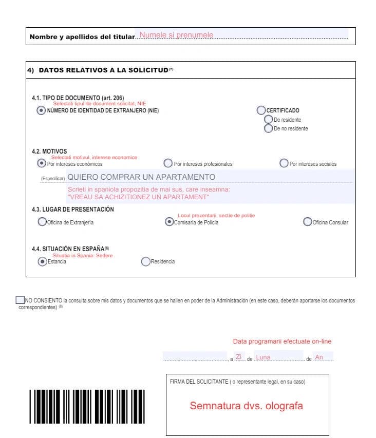 Prezentați formularul în ziua programării în format tipărit la oficiul care se va ocupa de cererea dvs. de obținere a numărului NIE!