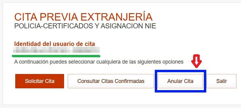 Urmați toți pașii descriși anterior până în punctul în care ar trebui să solicitați programarea, dar dați click pe butonul "Anular Cita":