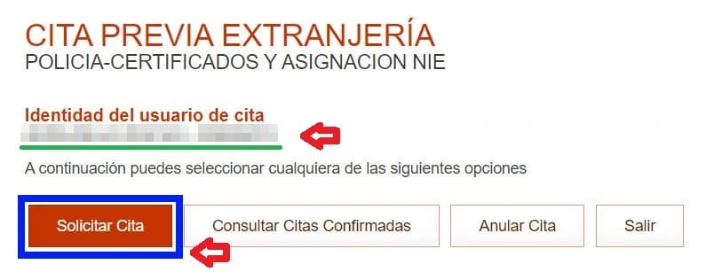 Verificați corectitudinea datelor inserate anterior - numele, prenumele și numărul pașaportului dvs. - și, dacă acestea sunt corecte, dați click pe "Solicitar Cita":