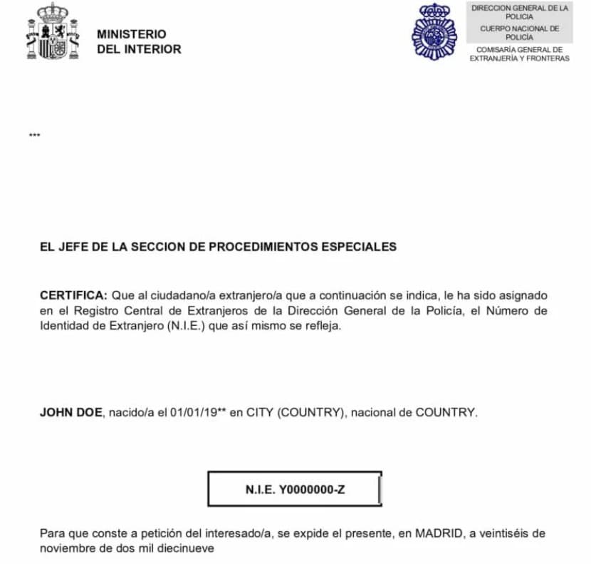 "El número de identificación de extranjero" sau "Numărul de Identificare pentru Străini (NIE)" este un număr unic, personal și exclusiv atribuit străinilor care desfășoară activități economice, profesionale sau sociale în Spania. Este necesar pentru a putea face orice operațiuni juridice, financiare sau sociale, cum ar fi deschiderea unui cont bancar, achiziționarea unei proprietăți sau plata taxelor. Obținerea numărului NIE este primul pas în această direcție.