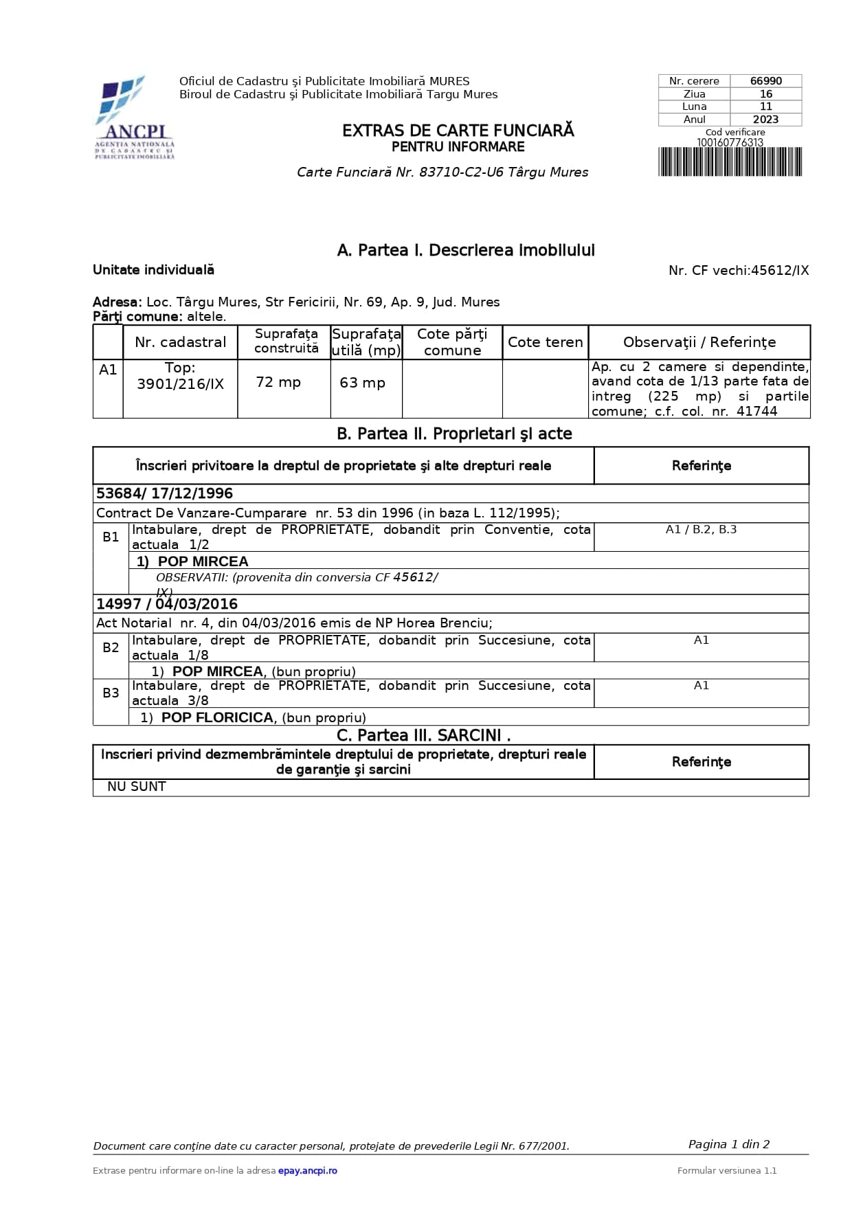 După ce ți-ai creat și activat contul MyEterra, obținerea efectivă a extrasului este rapidă. Te autentifici în platformă, soliciți extras de carte funciară pentru informare gtatuit pentru imobilul dorit (proprietatea ta) și documentul este generat digital. Dacă proprietatea este deja în sistemul electronic, extrasul se va putea descărca aproape instantaneu (în câteva minute) din contul tău; în caz contrar, va fi pregătit în cel mult două zile lucrătoare. Nu se percepe niciun cost pentru proprietar, iar documentul electronic furnizat de ANCPI are valoare informativă oficială – poate fi folosit la nevoie la bancă, notar, primărie etc., la fel ca un extras tipărit. Alternativ, dacă nu ești familiarizat cu mediul online, poți obține gratis extrasul de informare și prin metoda tradițională: mergând la ghișeu (OCPI) cu cartea de identitate, unde personalul va elibera extrasul pe hârtie fără să încaseze vreo taxă (din aprilie 2025, proprietarii sunt scutiți de plata tarifului și la oficiile teritoriale).